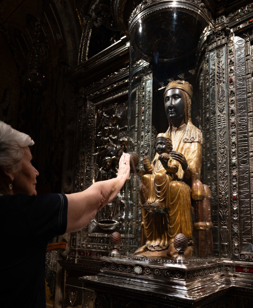 Last day in Barcelona – trip to the Monastery at Montserrat (Julie touching the hand of the black Madonna).